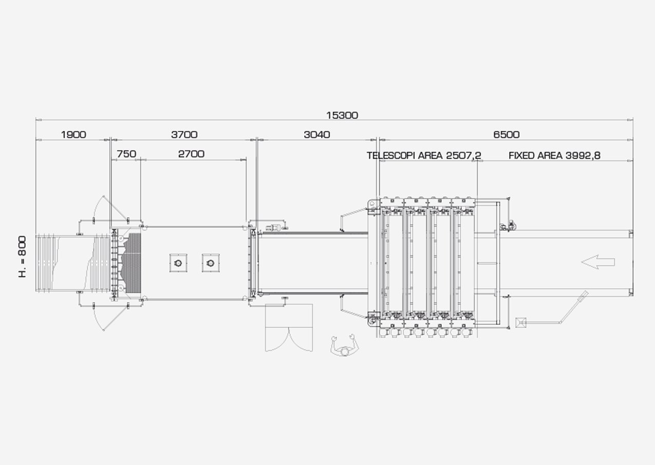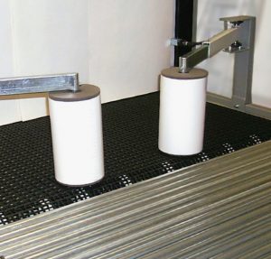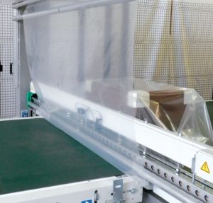 Sistema di trasporto del tunnel di retrazione con rete in polimeri per garantire superficie d’appoggio uniforme, bassi consumi e facilità di manutenzione.