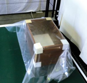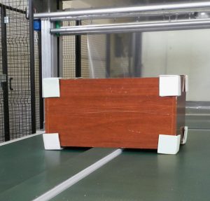 stabilizzazione meccanica del polietilene sul prodotto, mediante passaggio del mobile attraverso il forno di termoretrazione.